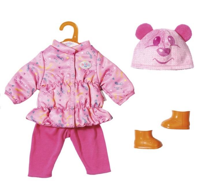 Ciepłe ubranko dla lalki Baby born. Zestaw zawiera kurteczkę, spodnie, czapeczkę która wygląda jak buzia misia oraz buciki.