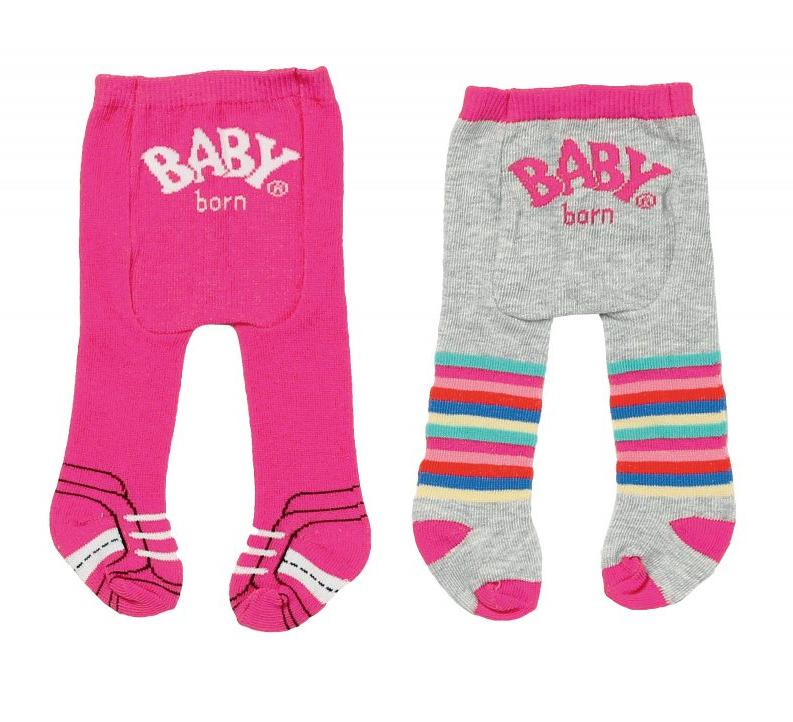 Rajstopki dla Baby born (43 cm) to niezbędny dodatek do stroju i nie powinno go zabraknąć w garderobie laleczki. Zestaw zawiera dwie pary rajstop: gładką - różową, z motywem bucików na stópkach i logo na pupie oraz drugą parę - szarą, z kolorowymi paseczkami.