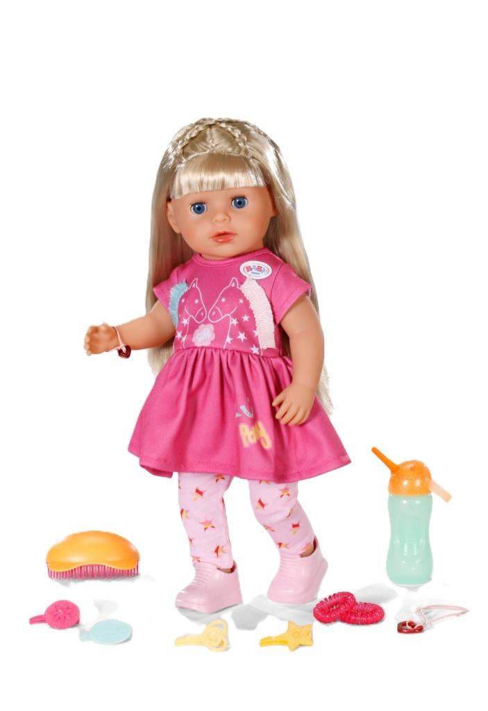 Mająca 36 cm wzrostu, młodsza siostra Sarah jest idealnym uzupełnieniem rodziny BABY born. Wszystkie jej 7 funkcji do zabawy działa bez baterii. Jej długie, blond włosy wykonane z wysokiej jakości nylonu są szczególnie świetne i można je stylizować, czesać i układać za pomocą 11 różnych akcesoriów. Ale nie tylko o jej włosy można dbać z miłością: Sarah może pić z butelki, płakać prawdziwymi łzami i zamykać oczy, leżąc. Jest również super elastyczna, może zginać kolana i samodzielnie stać. Dzięki temu nadaje się dla dzieci w wieku od 3 lat, ale także dla starszych dzieci.