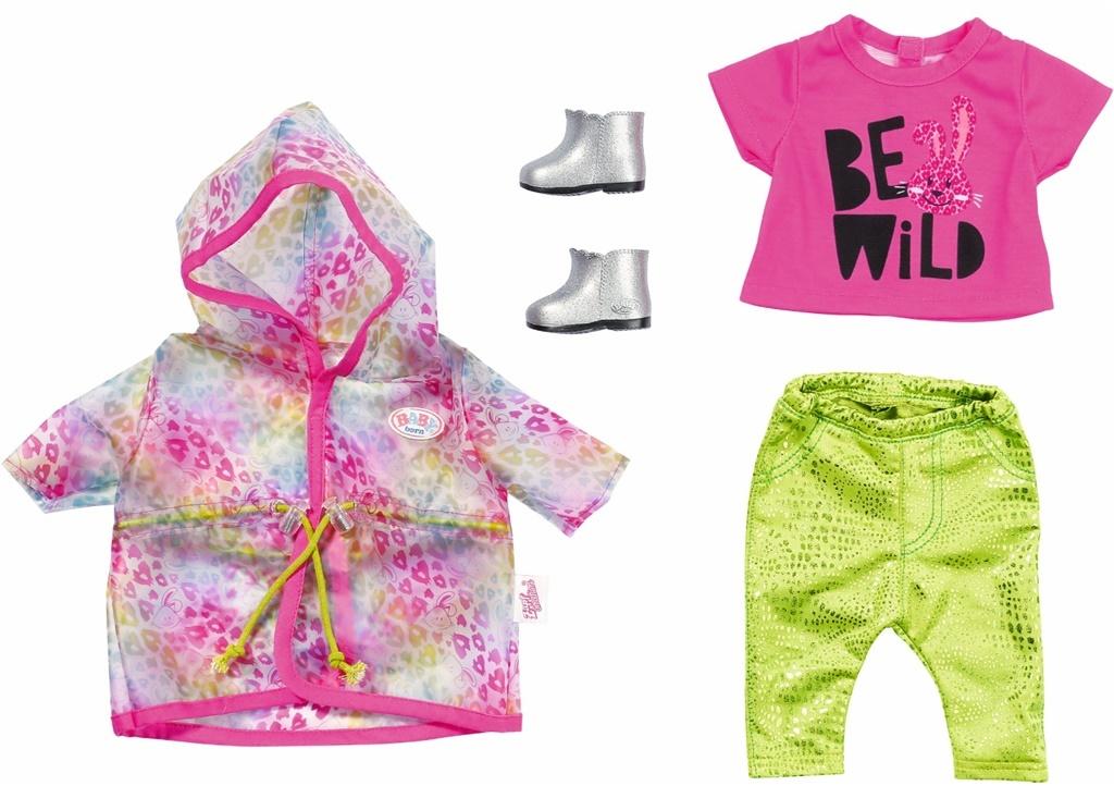 Super kolorowy zestaw ubranek dla Baby Born. W zestawie kolorowa kurtka w zwierzęcy print, różowa koszulka, legginsy i buciki! Ubierz swoją lalkę i zabierz ją na wiosenny spacer!