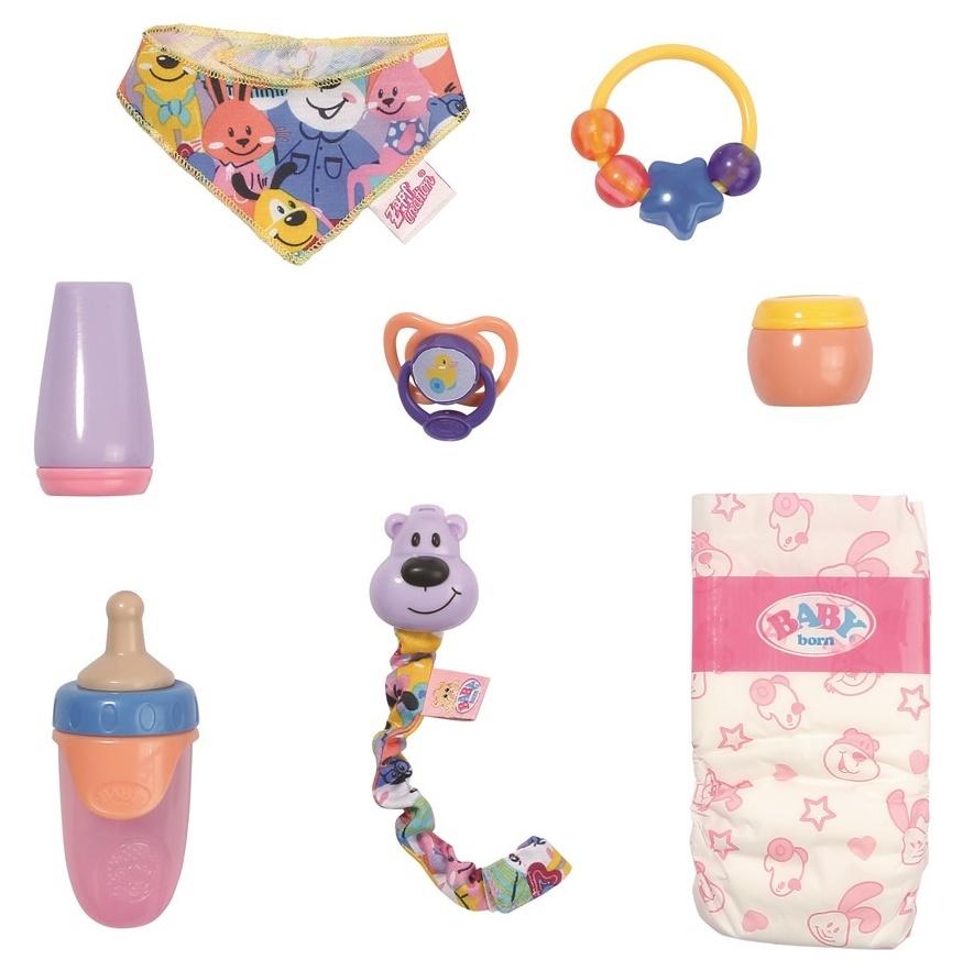 Zestaw zawiera wszystkie akcesoria do dbania o Twoją lalkę Baby Born. Nakarm swoją lalkę butelką, zmień jej pieluszkę lub daj jej smoczek!