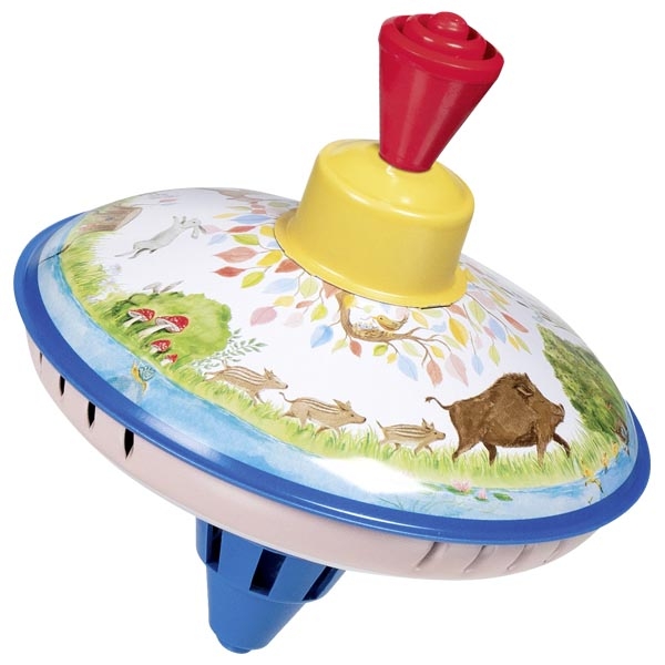 Metalowo-plastikowy bączek z motywami leśnych zwierząt. Wirujące obrazki i dźwięk zachęcają do eksploracji zasad ruchu, rozwijając koordynację ruchową oraz spostrzegawczość u maluchów.