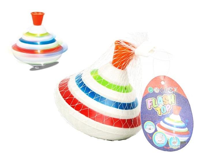 Klasyczna zabawka bączek znana od pokoleń. Pomoże dziecku wyćwiczyć zręczność, przykuwając uwagę na długie chwile. Zabawka świeci kolorowym światełkiem i gra melodie. Zabawka przeznaczona dla dzieci powyżej 18 miesiąca. Zabawka zapakowana w worek z siateczki. Produkt działa na baterie typu AG13. Baterie znajdują się w zabawce. Podane wymiary są wymiarami zabawki w opakowaniu.