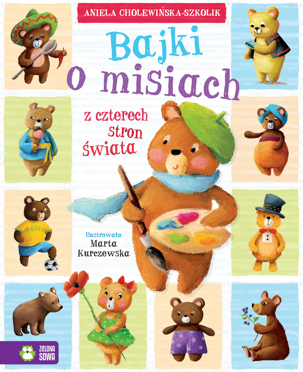 Na świecie mieszka wiele różnych misiów. Są misie brunatne i polarne, misie szmaciane i pluszowe. Każdy z nich jest wyjątkowy i milusi! W tej książce znajdziesz opowieści o misiach z różnych krajów i kontynentów. Poznasz małego misia polarnego Płatka, pobawisz się w chowanego z misiem Fikusem, pomożesz odważnemu Figielkowi złapać łobuzów, a z Maju Dżi odbędziesz podróż latającym dywanem. Bajki o misiach z czterech stron świata to cudowne historie pełne uroczych misiów oraz piękne ilustracje autorstwa Marty Kurczewskiej, autorki ilustracji do bestsellerowych książek o wikingu Tappim! Zbiór "Bajek o misiach z czterech stron świata" to 4 w 1 - czyli specjalny zestaw czterech części opowiadań Anieli Cholewińskiej-Szkolik. Znajdziecie w nim w najlepsze opowiadania z książek: " "Bajki o misiach. Urodzinowy prezent i inne opowiadania", " "Bajki o misiach. Petit maluje wieżę Eiffla i inne opowiadania", " "Bajki o misiach. Lekcja Pływania i inne opowiadania", " "Bajki o misiach. Herbatka u promyka i inne opowiadania". Spis treści: 1.Urodzinowy prezent – Polska 2.Spotkanie z Trollami – Norwegia 3.Węgielek ratuje owieczkę – Kanada 4.Pechowy strzał – Argentyna 5.Walka smoków – Chiny 6.Lekcja pływania – Arktyka 7.Zabawa w chowanego – Australia 8.Figiel łapie łobuzow – Niemcy 9.Nao się buntuje – Japonia 10.Herbatka u Promyka – Wielka Brytania 11.Maju Dżi na latającym dywanie – Indie 12.Petit maluje wieżę Eiffla – Francja 13.Zagubiony podarunek – Rosja 14.Przygoda na Safari – Tanzania 15.W kolorze morza - Grecja