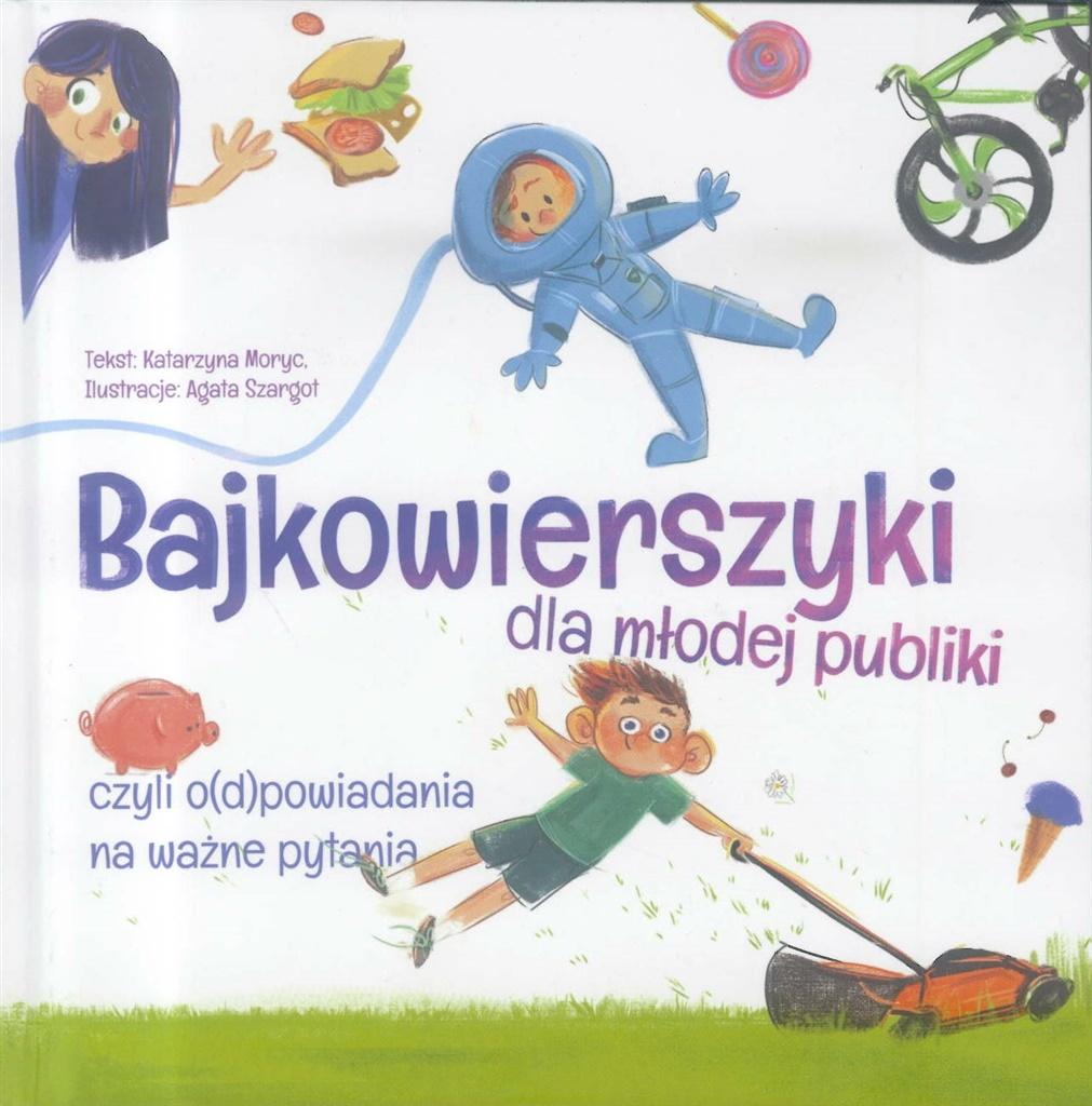 Czy Karol naprawdę widział UFO? Dlaczego Amelka dostaje masę prezentów, a mimo to jest coś, czego zazdrości Hani? Skąd wziąć pieniądze na wymarzony rower? Co wprawiło Olka w osłupienie? I skąd biorą się dzieci? Jeśli chcecie znać odpowiedzi na te i inne pytania, „Bajkowierszyki dla młodej publiki, czyli o(d)powiadania na ważne pytania” są propozycją idealną dla Was! Tych pięć pisanych wierszem bajeczek ma nie tylko bawić, ale również uczyć, pomagając młodym czytelnikom radzić sobie z emocjami, a dorosłym, czytającym wspólnie z dziećmi, podpowiadać, jak zacząć prowadzić trudne rozmowy. Katarzyna Moryc – wiecznie zabiegana matka trzech synów pisząca wierszem. A ponieważ wiersz to taka wdzięczna forma, można o nim pisać dosłownie wszystko. I dla wszystkich. Nawet (a może zwłaszcza?) bajki „z przesłaniem”. Autorka projektu Bajkowierszownia i bloga kreacjowariacjhe.pl.