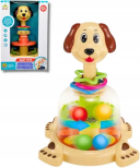 Zabawka doskonale wspiera rozwój motoryczny i koordynację wzrokowo-ruchową. Naciskanie główki pieska ćwiczy siłę rączek i precyzję, a obserwowanie wirujących piłeczek rozwija koncentrację i spostrzegawczość. Konstrukcja została wykonana z bezpiecznych, trwałych materiałów, idealnych dla najmłodszych dzieci. Zabawka ma rozmiar dostosowany do małych rączek i jest niezwykle prosta w obsłudze.
