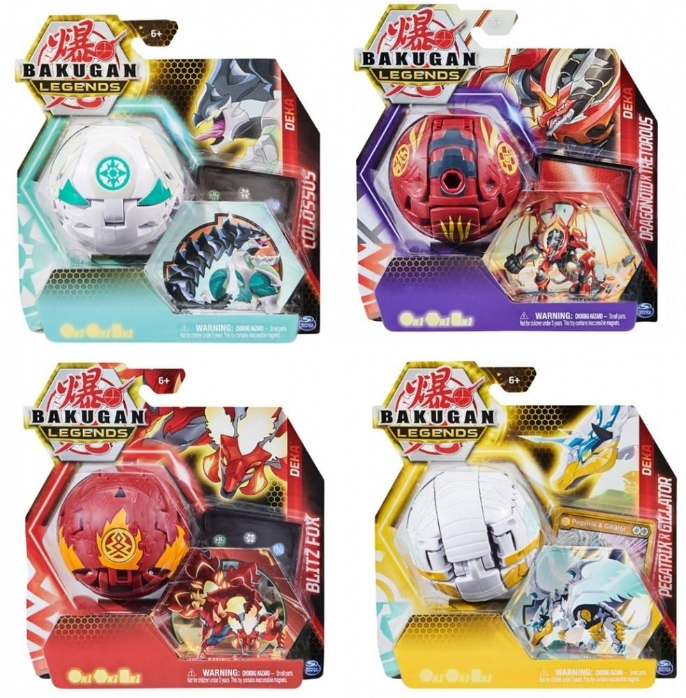 Twoja ulubiona zabawka Bakugan właśnie się powiększyła! Uwolnij moc Deka Bakuganów, dużych wersji Twoich ulubionych postaci z Bakugan, serialowego hitu (dostępnego na platformie NETFLIX)! Przemień swojego Bakugana, przetaczając go przez wyjątkowe duże GeoCore (w zestawie), a wyskoczy, zmieniając swój unikatowy kształt i przekształcając się w gotowego do bitwy Deka Bakugana! Każdy Deka Bakugan posiada niesamowite szczegóły, symbole domen i przechodzi inną przemianę, ożywiającą go. Te duże, potężne Bakugany są zawsze gotowe do działania! Dodaj do swojej kolekcji zabawki dla dziewczynek i chłopców Bakugan Legends z sezonu 5, w tym Geogan i Nova Bakugan, które świecą (każde sprzedawane osobno), i zbuduj swój własny zespół marzeń! Użyj puszki Baku-tin (sprzedawanej osobno) jako idealnego schowka na wszystkich nieustraszonych wojowników Bakugan Battle Brawlers i karty. Zbierz swoje ulubione postacie z kultowego serialu (na platformie Netflix) i weź udział w bitwie Bakuganów ze swoimi ulubionymi kolekcjami figurek i kart Bakugan! Czy masz odwagę stać się mistrzem Bakuganów?