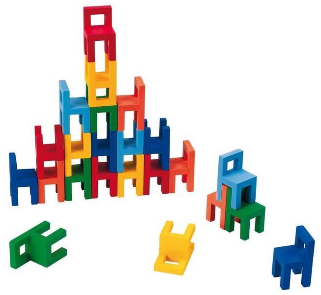 Spróbuj zbudować jak najwyższą wieżę z małych kolorowych krzesełek! Świetne ćwiczenie sprawności małych rączek, wprowadzenie do zasad statyki i przede wszystkim znakomita zabawa. Opakowanie zawiera 24 drewniane krzesełka o wysokości 7 cm każde.