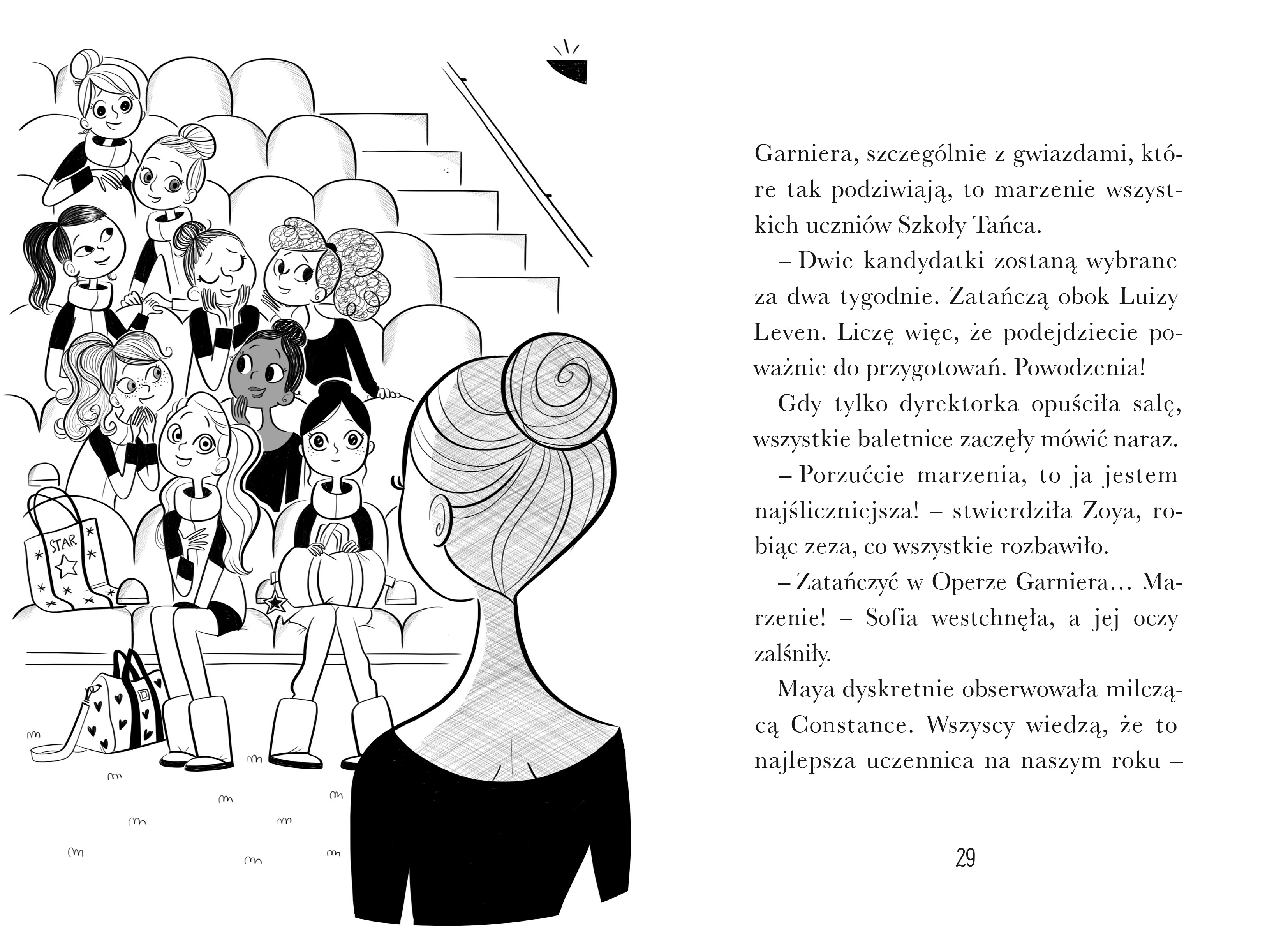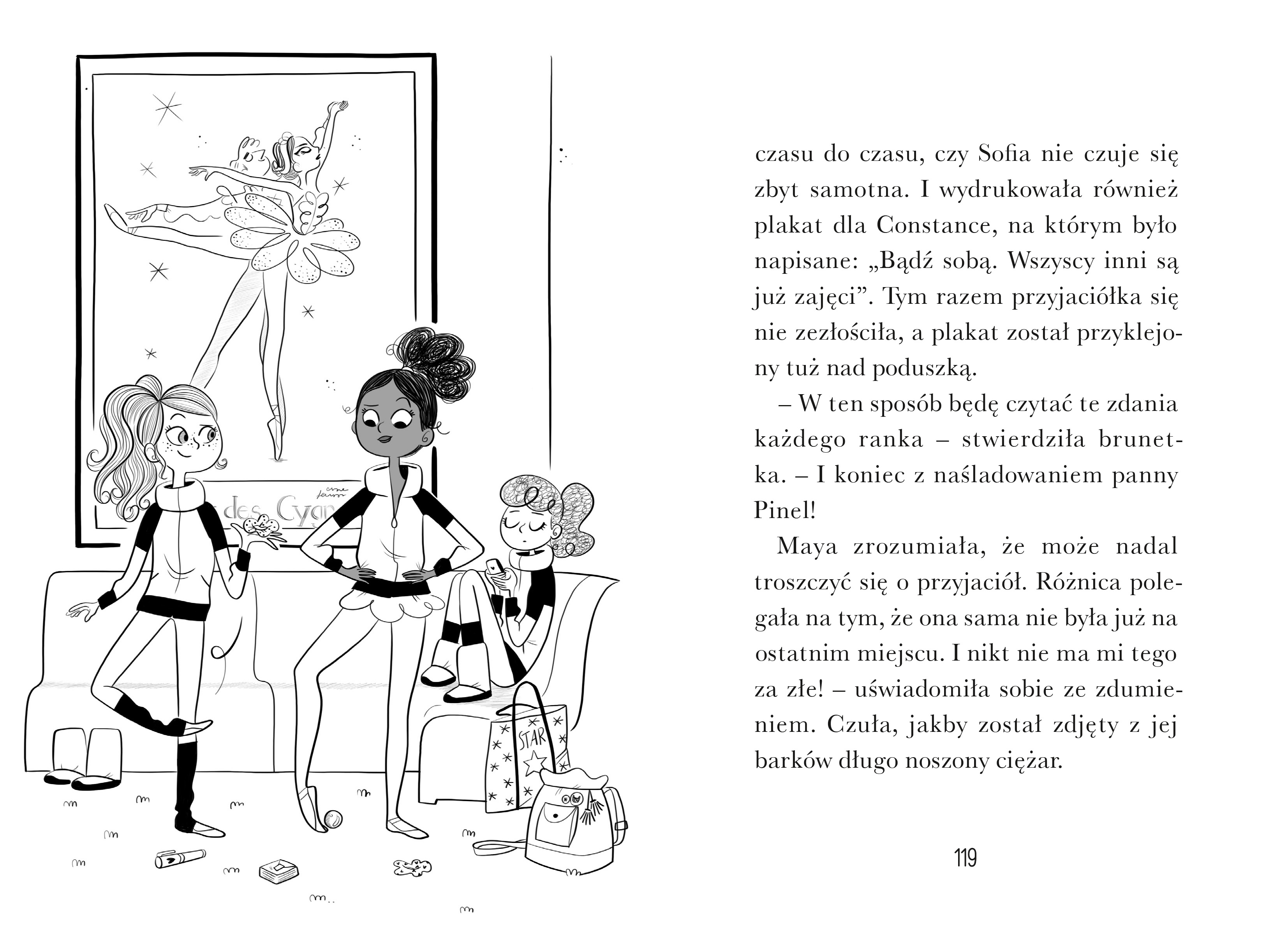 Trzy dziewczynki i tylko dwie role w przedstawieniu. Czy lepiej wygrać, czy mieć prawdziwą przyjaciółkę? Pierwszy tom bestsellerowej francuskiej serii „Baletnice” w końcu w Polsce! Wielkie zamieszanie w elitarnej szkole baletu – ogłoszono konkurs! Najlepsze uczennice zagrają w przedstawieniu w operze w Paryżu. Ale role są tylko dwie, a Constance, Zoya i Maya to trzy przyjaciółki. Każda z nich jest inna, ale wszystkie mają to samo marzenie: zostać najlepszą baletnicą i tańczyć na scenie jak księżniczka.