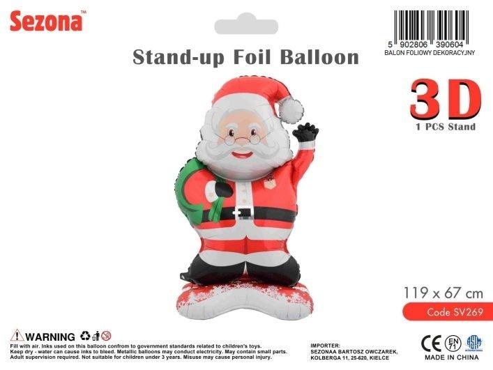 Balon foliowy stojący 3D Mikołaj - 119 67 cm