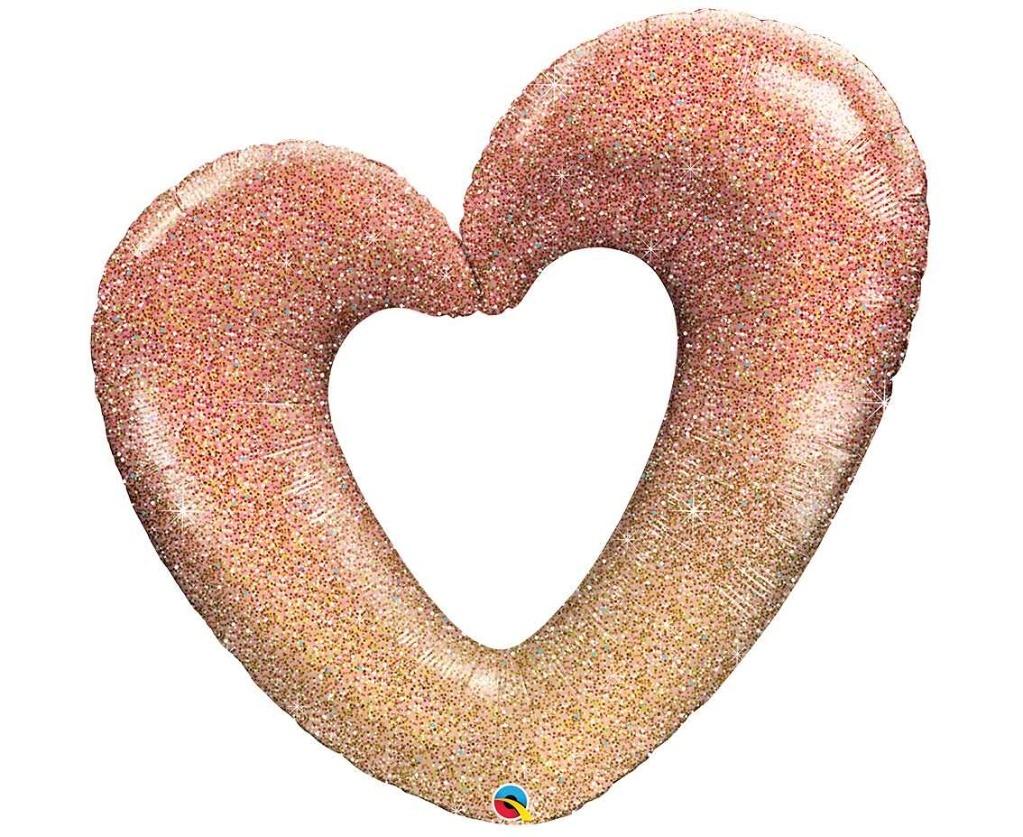 BALON FOLIOWY RÓŻOWO-ZŁOTE SERCE BROKAT OMBRE