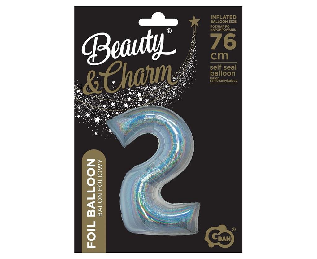 Balon foliowy B&C cyfra 2 holograficz srebrna 76cm