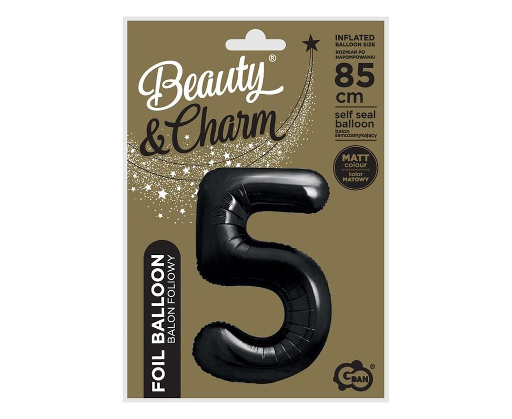 Balon foliowy B&C cyfra 5 matowa czarna 85cm