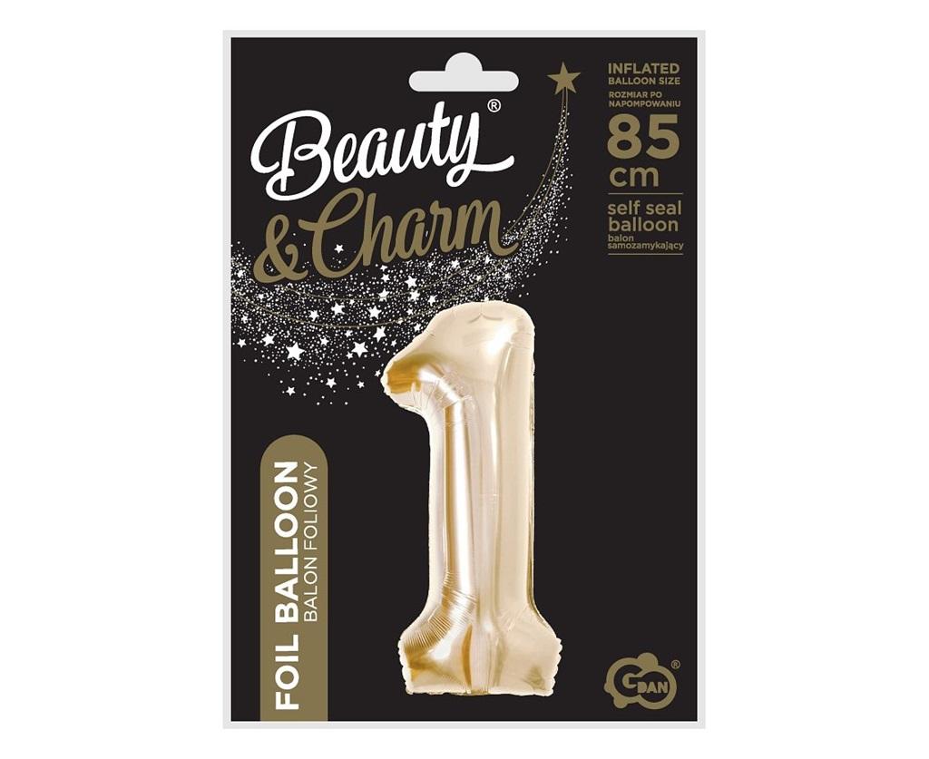 BALON FOLIOWY CYFRA 1, SZAMPAŃSKA