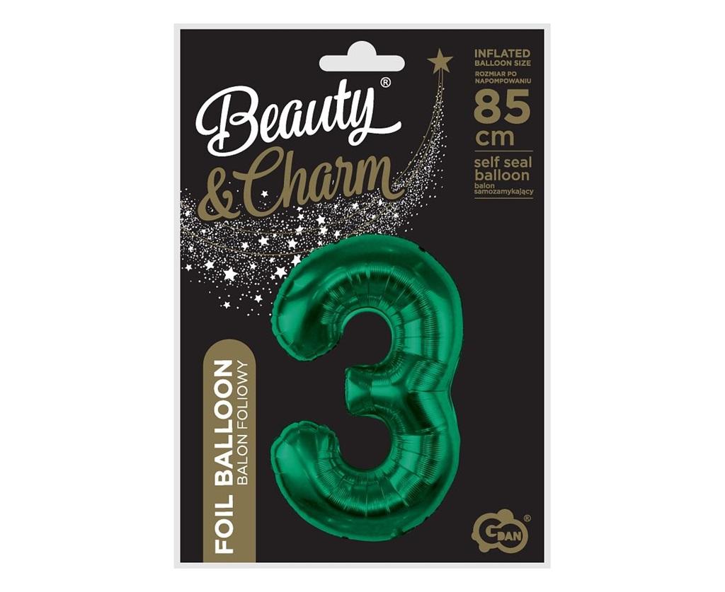 BALON FOLIOWY CYFRA 3, BUTELKOWA ZIELEŃ