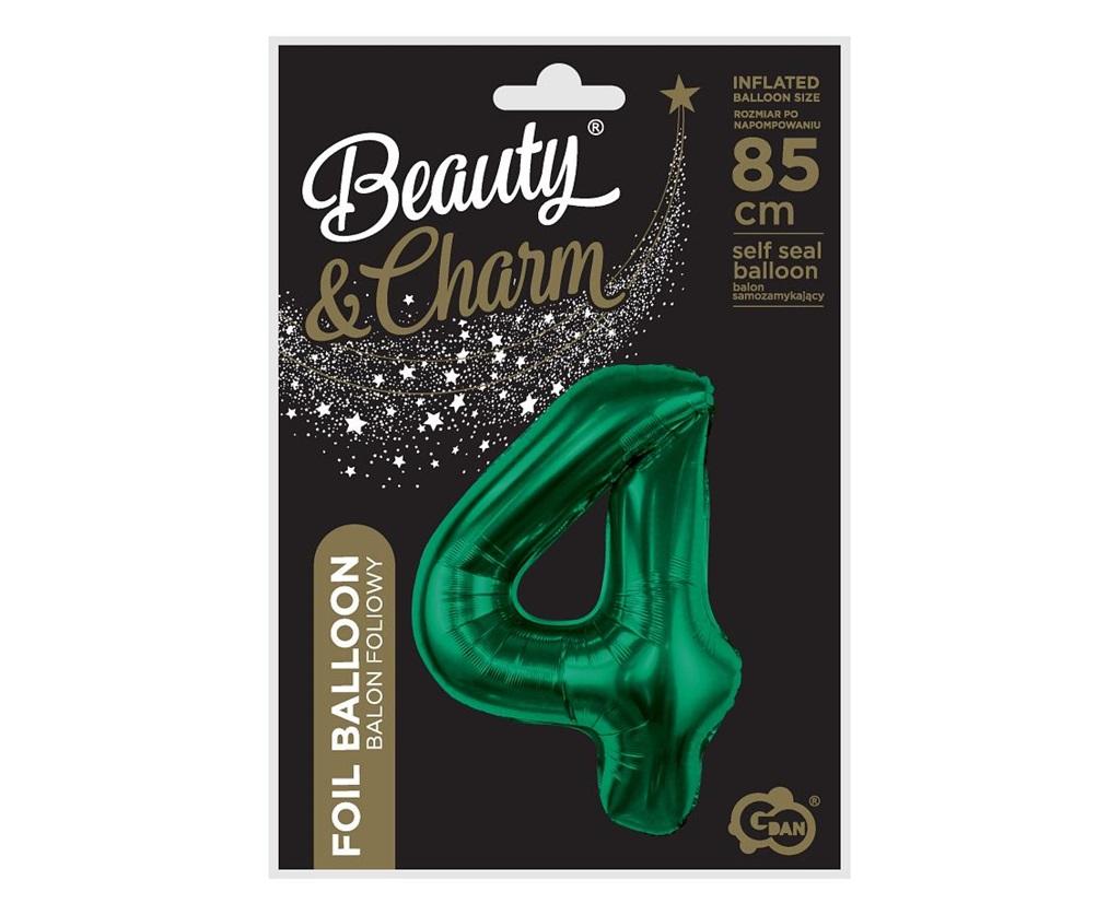 BALON FOLIOWY CYFRA 4, BUTELKOWA ZIELEŃ