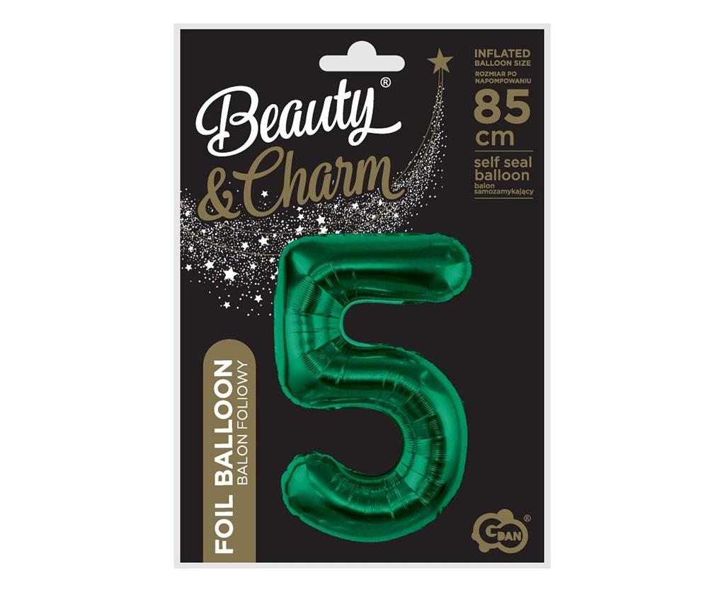 BALON FOLIOWY CYFRA 5, BUTELKOWA ZIELEŃ