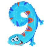 Balon foliowy w kształcie cyfry 9, stylizowany na jaszczurkę. Balon urodzinowy dla dzieci. W połączeniu z innymi balonami z serii tworzy oryginalną dekorację przyjęcia urodzinowego, rocznicowego. Produkt należy napełnić powietrzem. Balon posiada samozaciskający się wentyl - nie trzeba go dodatkowo wiązać. Balon o wymiarze 45 cm przed napompowaniem oraz 36 cm po nadmuchaniu