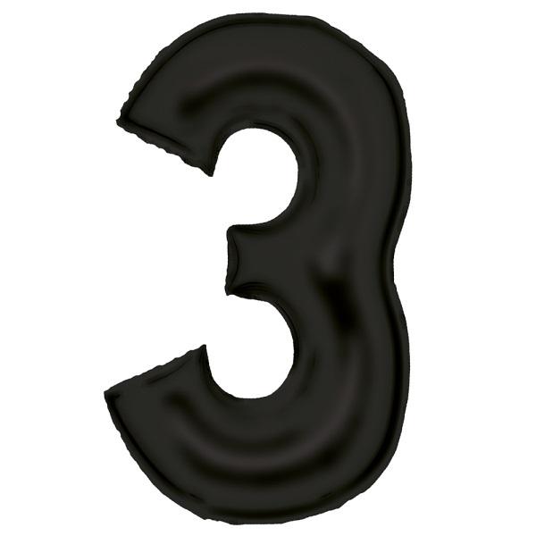 Balon foliowy cyfra 3 satynowa czarna 86 cm