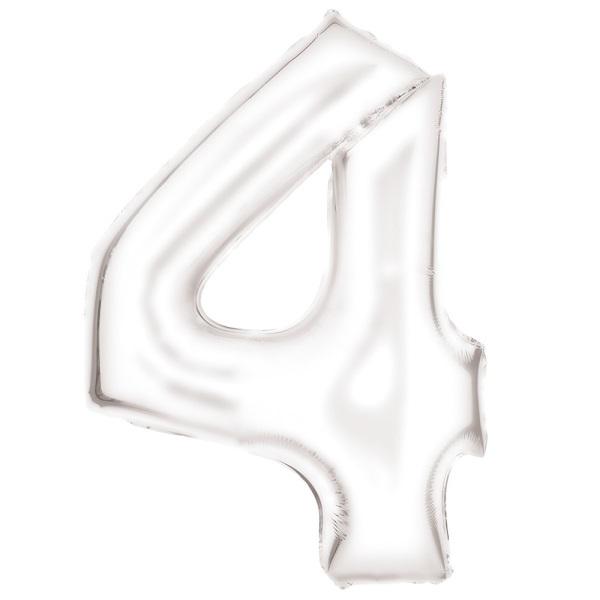Balon foliowy cyfra 4 satynowy biały zapakowany 86 cm