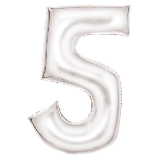 Balon foliowy cyfra 5 satynowy biały zapakowany 86 cm