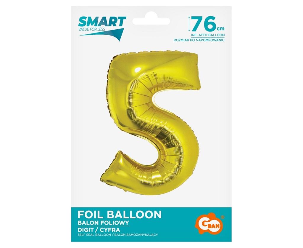 Opakowanie Balon foliowy cyfra 5 złota Smart 76cm
