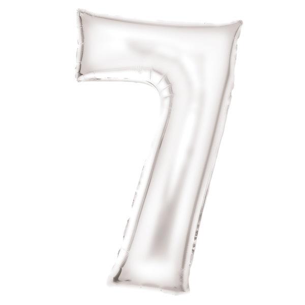 Balon foliowy cyfra 7 satynowy biały zapakowany 86 cm