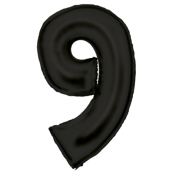 Balon foliowy cyfra 9 satynowa czarna 86 cm