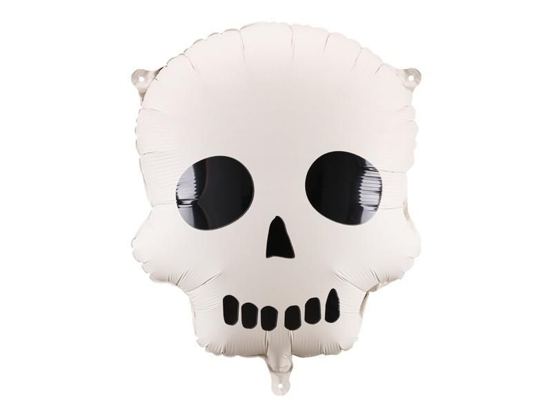Balon foliowy Czaszka w kolorze kremowo-czarnym. Wymiary przed napompowaniem: ok. 45,5 x 52,5 cm (17.9 x 20.7''), wymiary po napompowaniu: ok. 36 x 41 cm (14.2 x 16.1''). Do napompowania powietrzem i helem. Zestaw zawiera słomkę.