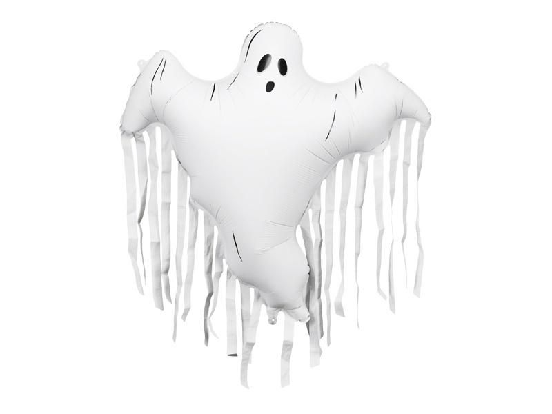 Balon foliowy Duch z frędzlami w kolorze kremowym z czarnymi elementami. Wymiary przed napompowaniem: ok. 106 x 95 cm (41.7 x 37.4''), wymiary po napompowaniu: ok. 93 x 86 cm (36.6 x 33.8''). Do napompowania powietrzem i helem. Zestaw zawiera słomkę.