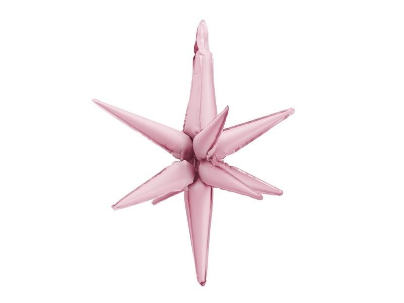Balon foliowy matowy Gwiazda 3D w kolorze jasnego różu, rozmiar przed napompowaniem ok. 66 x 79 cm (26 x 31''), rozmiar po napompowaniu ok. 70 cm (28''). Do napompowania powietrzem. Zestaw zawiera słomkę.