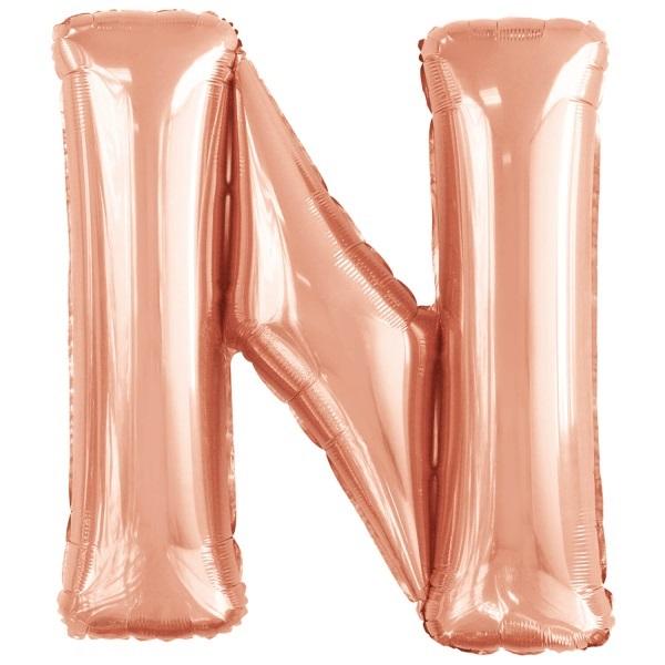 Balon foliowy litera N różowe złoto 79 cm x 86 cm