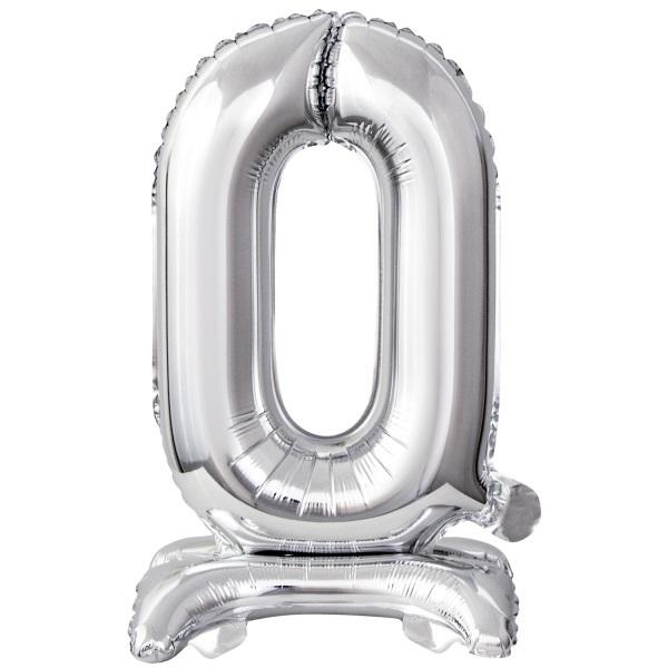 Mini cyfra 0 na stojaku srebrny balon foliowy zapakowany 22 cm x 40 cm