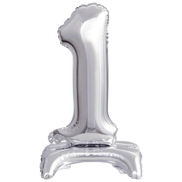 Balon foliowy mini cyfra 1 na stojaku srebrna