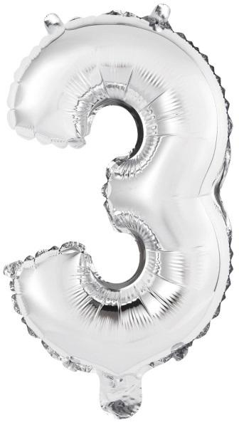 Balon foliowy mini cyfra 3 srebrna 25x40cm