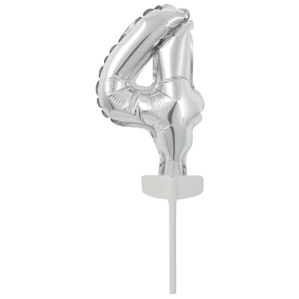 Balon foliowy mini cyfra 4 srebrna 8x12cm
