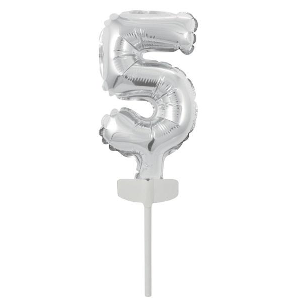 Balon foliowy mini cyfra 5 srebrna 7 cm x 12 cm