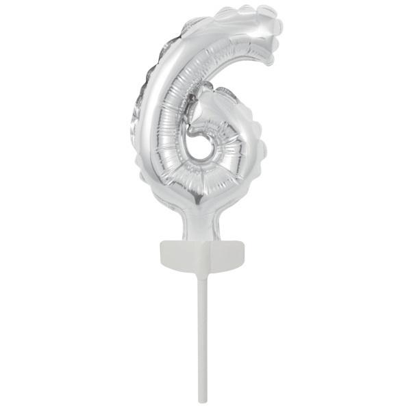 Balon foliowy mini cyfra 6 srebrna 7x12cm