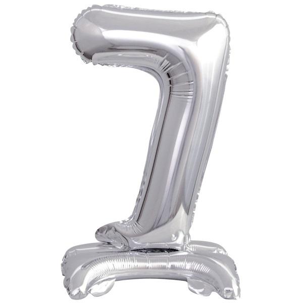 Mini cyfra 7 na stojaku srebrny balon foliowy zapakowany 22 cm x 40 cm