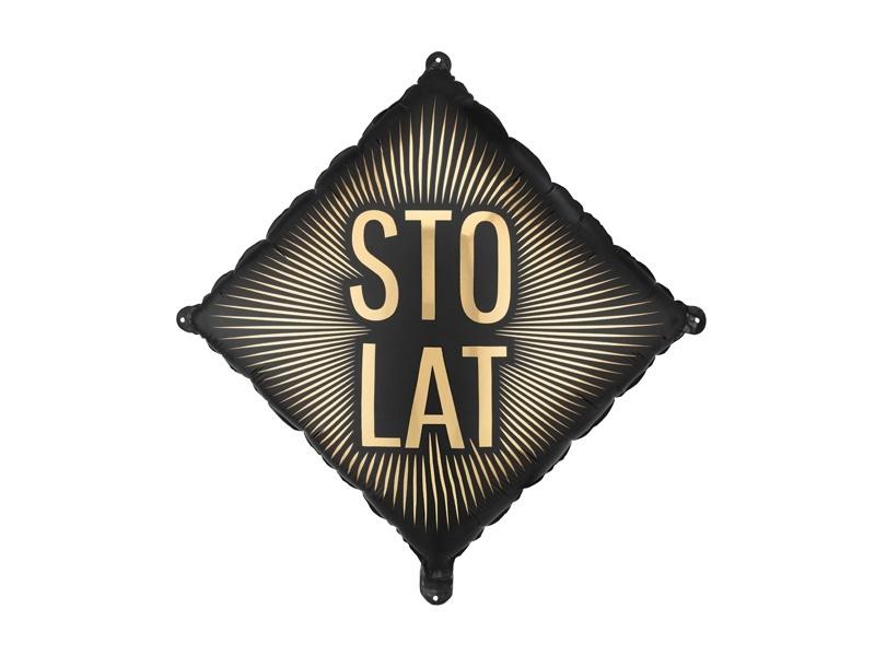 Balon foliowy w kolorze czarnym ze złotym napisem ''Sto lat''. Wymiary przed napompowaniem ok. 54 x 54 cm (20 x 20''), wymiary po napompowaniu ok. 46 x 46 cm (18 x 18''). Do napompowania powietrzem i helem. Zestaw zawiera słomkę.