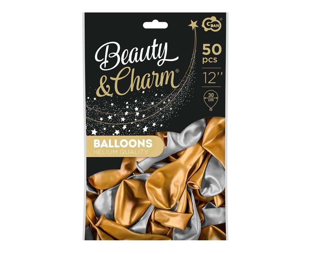 Balony B&C mix: metaliki złote i srebrne, 12"/ 50 szt. Uwaga: balon pakowany maszynowo, ilości sztuk z danego koloru występują w różnych proporcjach.