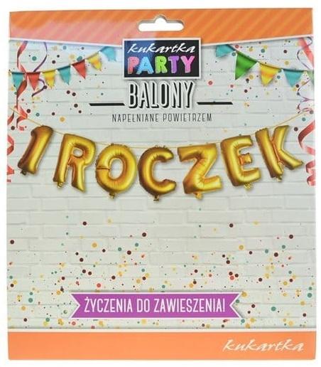 Zestaw balonów z serii ""Życzenia do zawieszenia"" tworzących napis w kolorze złotym. Balony opakowane w kolorowy kartonik do zawieszenia. W zestawie balony w kształcie liter, słomka do ich nadmuchiwania i sznurki do zawieszenia napisu. Wysokość litery: 41 cm, balony napełniane powietrzem. Cechy szczególne: - jakość wykonania - duży rozmiar - atrakcyjne opakowanie - łatwość zawieszenia - uniwersalna okazja - na urodziny, jubileusz, imieniny