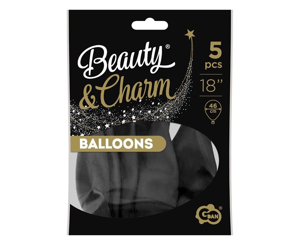 BALONY BEAUTY&CHARM, PASTELOWE CZARNE Rozmiar w calach: 18" Rozmiar w centymetrach: ok. 46 cm Kolor: pastelowe czarne Ilość sztuk w opakowaniu: 5 Kolekcja/Linia: Beauty&Charm