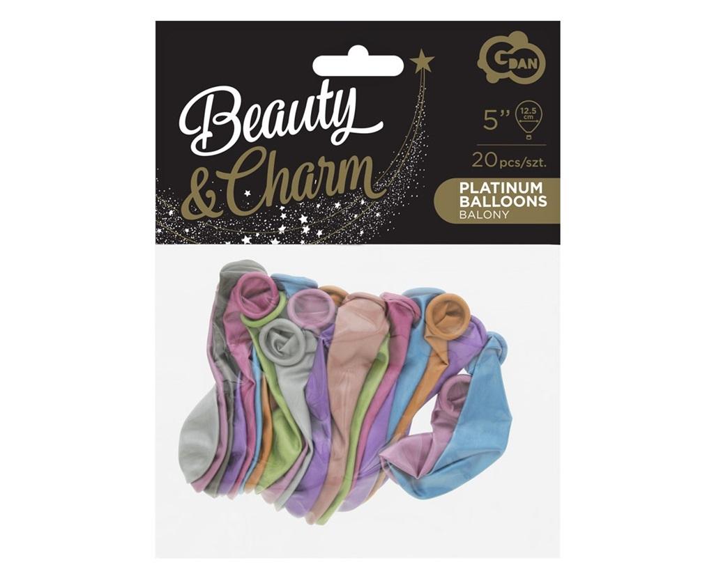 Balony Beauty&Charm, platynowe mix kolorów 5", 20 szt. Rozmiar w calach: 5 Rozmiar w centymetrach: ok. 13 cm Kolor: platynowy wielokolorowy Ilość sztuk w opakowaniu: 20 Kolekcja/Linia: Beauty&Charm Producent: Godan S.A. Z dumą prezentujemy nasze wyjątkowe balony z ekskluzywnej kolekcji Beauty&Charm! Zaczaruj przestrzeń i OCZARUJ najbliższych Dzięki balonom z kolekcji B&C, najważniejsze momenty w Twoim życiu staną się jeszcze bardziej doniosłe i wyjątkowe! Możesz je postawić w dowolnym miejscu, w którym świętujesz. Bez względu na to, czy będzie to salon, sala balowa, czy biuro ? sprawdzą się w każdej przestrzeni. Celebruj z KLASĄ, baw się jak nigdy przedtem Wyróżnikiem kolekcji Beauty&Charm jest olśniewający design. Balony B&C wpisują się w estetykę całej linii i doskonale uzupełniają się z innymi produktami z tej serii. Dzięki temu możesz zaprojektować spójny wystrój każdej uroczystości, tworząc niesamowitą atmosferę. #GetTheBeauty&CharmLook