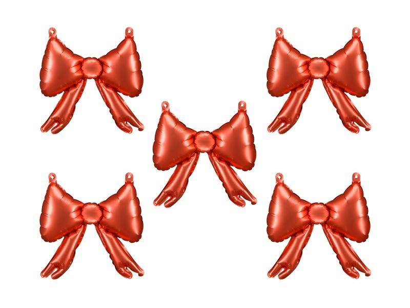 "Balony foliowe do girland Kokardy w kolorze czerwonym. Wymiary przed napompowaniem ok. 34,5 x 28,5 cm (13,5 x 11''), wymiary po napompowaniu ok. 25,5 x 25 cm (10 x 10''). Do napompowania powietrzem. Zestaw zawiera 5 sztuk oraz słomkę.(1 op. / 5 szt.)"