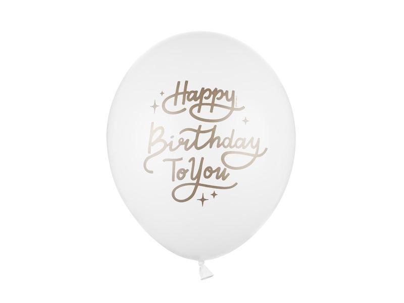 Balony Strong Happy Birthday To You w kolorze Pastel Pure White ze złotym nadrukiem, średnica ok. 30 cm.(1 op. / 50 szt.)
