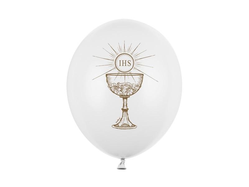 Balony Strong IHS w kolorze Pastel Pure White z dwustronnym, złotym nadrukiem, średnica 30 centymetrów.(1 op. / 6 szt.)