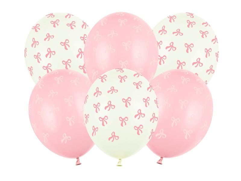 Balony Strong Kokardki z nadrukiem, zestaw zawiera 2 kolory balonów (Pastel Light Cream i Pastel Baby Pink) z pięciostronnym nadrukiem, średnica ok. 30 cm.(1 op. / 6 szt.)