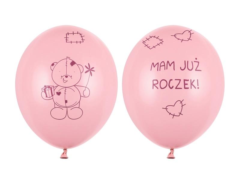 Balony Strong Miś - mam już roczek w kolorze Pastel Pink, z czerwonym, trzystronnym nadrukiem: z obu stron oraz z góry, średnica 30 centymetrów.(1 op. / 6 szt.)