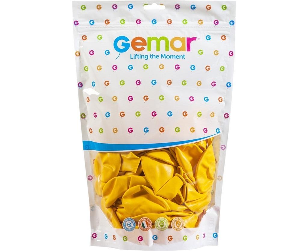Balony pastelowe Ciemnożółte, G120, 33 cm, 50 szt. Włoskiego producenta - firmy Gemar. Posiadają odpowiedniej długości końcówkę, więc nie ma problemów z ich wiązaniem. W opakowaniu znajduje się 50 szt. pastelowych ciemnożółtych balonów. Wielkość balonów w calach: 13 Wielkość balonów w centymetrach: ok. 33 cm Balony nie posiadają nadruku.
